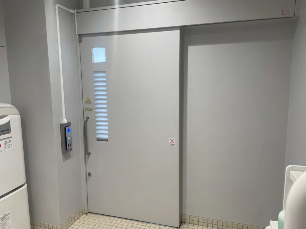 バリアフリートイレに自動ドアを導入し、出入りのしやすさと安全性を向上。誰もが安心して使える環境を整えます。